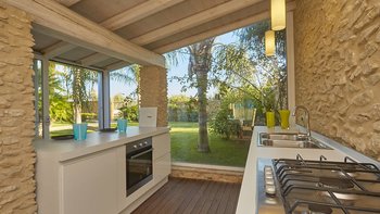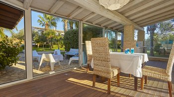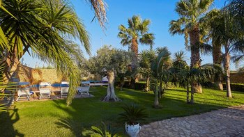 Von der Terrasse gelangen Sie zum herrlichen Privater Pool und zum Terrassenbereich mit Liegestühlen. Der hübsche Garten mit Rasen und schattenspendenden Palmen führt zum Nebengebäude, das aus einem offenen OFFENER GRUNDRISS mit Küche, zwei Schlafzimmern und Duschbad besteht. Dessen Nebengebäude ist wunderbar hell und hell, mit großen Panoramafenstern und Schiebetüren mit Blick auf die Gärten. Marinella di Selinute mit seinen Geschäften und Restaurants ist nur 1 km von der Unterkunft entfernt, und der nächste Sandstrand ist nur ein wenig weiter.