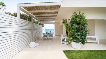 Nur wenige Schritte vom Sandstrand von Scoglio Bianco entfernt erwartet Sie die moderne und stilvolle Villa Smeraldo mit einem Whirlpool und direktem Meerzugang.