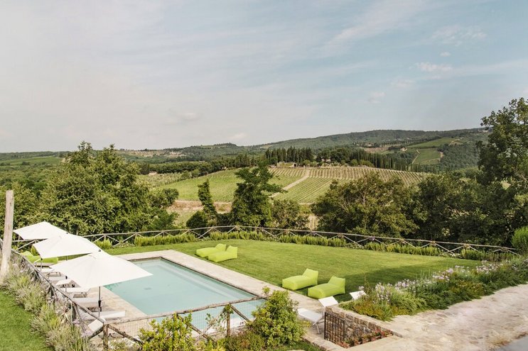 La Fonte ist eine neu renovierte, stilvolle Villa mit fünf Schlafzimmern in Borgo Pignano, wunderschön in den malerischen grünen Hügeln der Toskana gelegen.