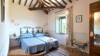 Der Zugang zu dieser Villa ist ziemlich bezaubernd, entlang einer Allee mit Buchen-, Eichen- und alten Kastanienbäumen und vorbei an einem hundert Jahre alten Zedernbaum bis zu dem hübschen Steinhaus, das in Kletterrosen gehüllt ist, mit einem herrlichen Blick auf Cetona, das eine märchenhafte Kulisse bildet. Auf dem Grundstück befinden sich weite Rasenflächen mit Blumen und Sträuchern, der Swimmingpool liegt zwischen versilberten Olivenbäumen und duftendem Lavendel. Denen geräumigen Zimmer der Villa sind attraktiv im frischen Landhausstil eingerichtet. Im Erdgeschoss befindet sich ein charmantes Wohn-/Esszimmer, das durch einen riesigen Steinbogen unterteilt wird, der von großen Doppeltüren zum Garten getragen wird, während ein zweites Wohnzimmer im oberen Stockwerk einen coolen ländlichen Look hat und sich zur Spitze der steinernen Außentreppe hin öffnet. Mit Waldwegen vor der Haustür ist die Villa nur 2,5 km von Cetonas Geschäften und guten Restaurants entfernt, mit Golfspielen in Panicarola, Wassersport am Trasimenischen See, einem hochmodernen Spa in San Casciano dei Bagni, Citta della Pieve und dem faszinierenden Cortona im Umkreis von 50 km. Von hier aus sind interessante Städte sowohl in der Toskana als auch in Umbrien und Rom und Florenz mit dem Schnellzug von Chiusi aus leicht zu erreichen.
