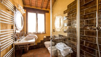 Perfekt für ein besonderes Treffen mit Freunden oder der Familie, ist dieses bemerkenswerte Anwesen umgeben von 60 Hektar Privatgrundstück mit Weinbergen, Oliven und Walnusshainen. Dessen weitläufige Rasenflächen umfassen einen Kinderspielplatz, einen riesigen Pool mit eingebauten Stufen und einer großen möblierten Pool-Pergola und geräumige Pergola-Bereiche im Freien außerhalb von Colonica und Granaio zum Mittagessen oder Faulenzen. Jedes der drei Gebäude der Villa ist unabhängig voneinander, aber günstig in der Nähe gelegen und hat seinen eigenen Charakter und seine eigenen Einrichtungen. Zusammen ist das Ganze viel größer als die Summe seiner Teile und bietet eine Auswahl an sozialen Räumen zum Essen und Erholen.Das größte Haus, Colonica, verfügt über drei Schlafzimmer, einen Essbereich, der groß genug ist, um die ganze Gruppe zu bedienen, einen geräumigen Sitz-/Billardraum und ein großes, hochmodernes Badezimmer mit Sauna, Dampfbadund Wassermassage und Dusche und ein weiteres smartes Duschbad. Dessen kleinste, Fienile, bietet auch Platz für ein „vollständiges Haus“ um seinen runden Tisch. Deren Granaio mit zwei Schlafzimmern verfügt über ein Wohnzimmer mit Sat-TV und zwei geräumige Schlafzimmer, ebenfalls mit Smart-Badezimmern. Deren sehr weitläufige Gärten mit Rasen und Kinderspielplatz mit Tischtennis sind ideal für Familien. Ein kompletter Kochservice kann hinzugefügt werden, und die Villa ist nur 3 km von Geschäften und einem Restaurant in Badia Agnano entfernt, mit mehreren größeren Dörfern ca. 10 km entfernt.
