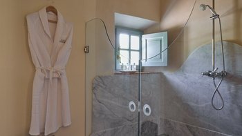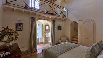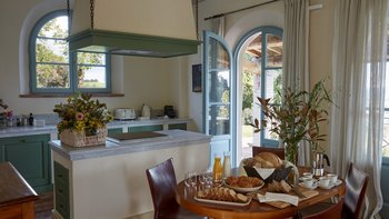 La Cavallerizza verfügt über ein warmes, charmantes Interieur mit Räumen, die speziell für den freien Fluss des natürlichen Lichts von Raum zu Raum konzipiert wurden. Deren geräumiges, OFFENER GRUNDRISS Wohnzimmer, Esszimmer und Küchenbereich verbinden das Leben im Innen- und Außenbereich nahtlos und laden die Gäste ein, die malerische Umgebung der Region auf der schattigen Terrasse zu genießen. Deren drei geräumigen Schlafzimmer der Villa, jedes mit eigenem Bad und Türen, die zum Garten führen, ermöglichen es den Gästen, sich in absolutem Komfort und Privatsphäre mit der Natur in Verbindung zu setzen.