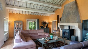 Podere del Paradiso ist eine helle und liebevoll restaurierte Familienvilla in der Toskana, wo auf Anfrage eine Reihe von spannenden Aktivitäten organisiert werden können, von Weinverkostungen bis hin zu Pizza-Partys! Im Erdgeschoss führt die Eingangshalle zu einer rustikalen Küche und einem großen Esszimmer mit Kamin, das sich auf eine überdachte Terrasse öffnet, wo man im Freien speisen kann. Es gibt vier Doppelschlafzimmer mit Bad en suite und ein kleiner Fernsehraum vervollständigt diese Etage. Im Obergeschoss befinden sich zwei weitere Doppelschlafzimmer und ein großes Wohnzimmer, das sich zu einer schönen Terrasse mit Blick auf die Landschaft öffnet; beide Schlafzimmer haben ein eigenes Bad.
