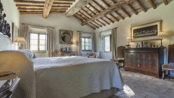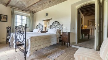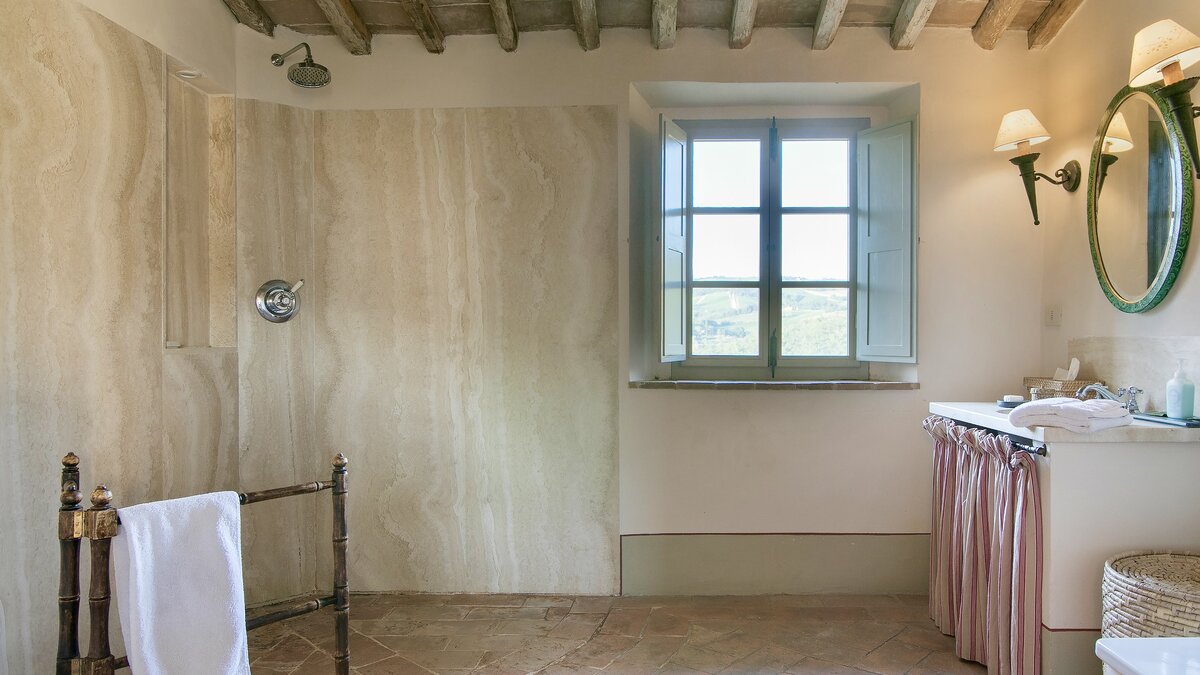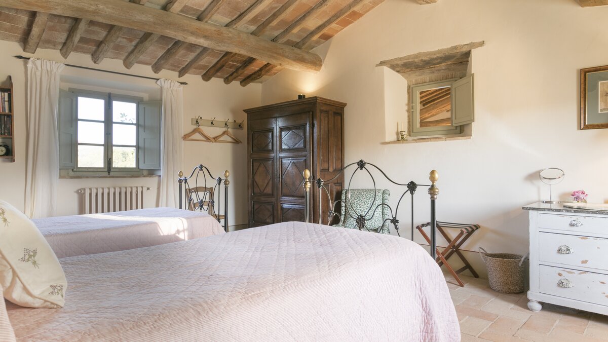 Die Innenräume des Podere Sicelle zeugen von einer sorgfältigen Restaurierung, bei der traditionelle Elemente beibehalten und gleichzeitig die notwendigen modernen Annehmlichkeiten integriert werden. Deren Herzstück der Villa ist ein sonniger Innenhof, der von einem alten Olivenbaum beschattet wird und von zwei Loggien mit herrlichem Blick auf das Tal flankiert wird. Deren geräumige Wohnzimmer, das aus einer Grashüpfer umgebaut wurde, verfügt über einen großen Flügel und einen Kamin, wodurch eine warme und einladende Atmosphäre geschaffen wird. Deren Küche ist ein kulinarischer Traum und für alle, die gerne im Freien speisen, wartet ein kleiner Marmortisch direkt vor der Tür, der von einer mit Weinreben bewachsenen Pergola beschattet wird. Vom eleganten Speisesaal in einem alten Weinkeller bis zum Turmschlafzimmer mit Panoramablick von drei Seiten bietet jedes Zimmer seinen ganz eigenen Charme. Dessen Hauptschlafzimmer, das über einen breiten Flur vom Wohnzimmer im Obergeschoss erreichbar ist, strahlt Ruhe aus und verfügt über ein eigenes Bad mit Badewanne und separater Dusche.
