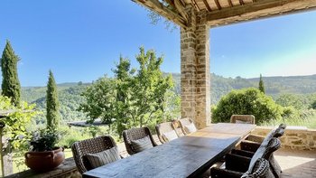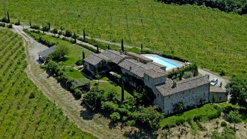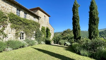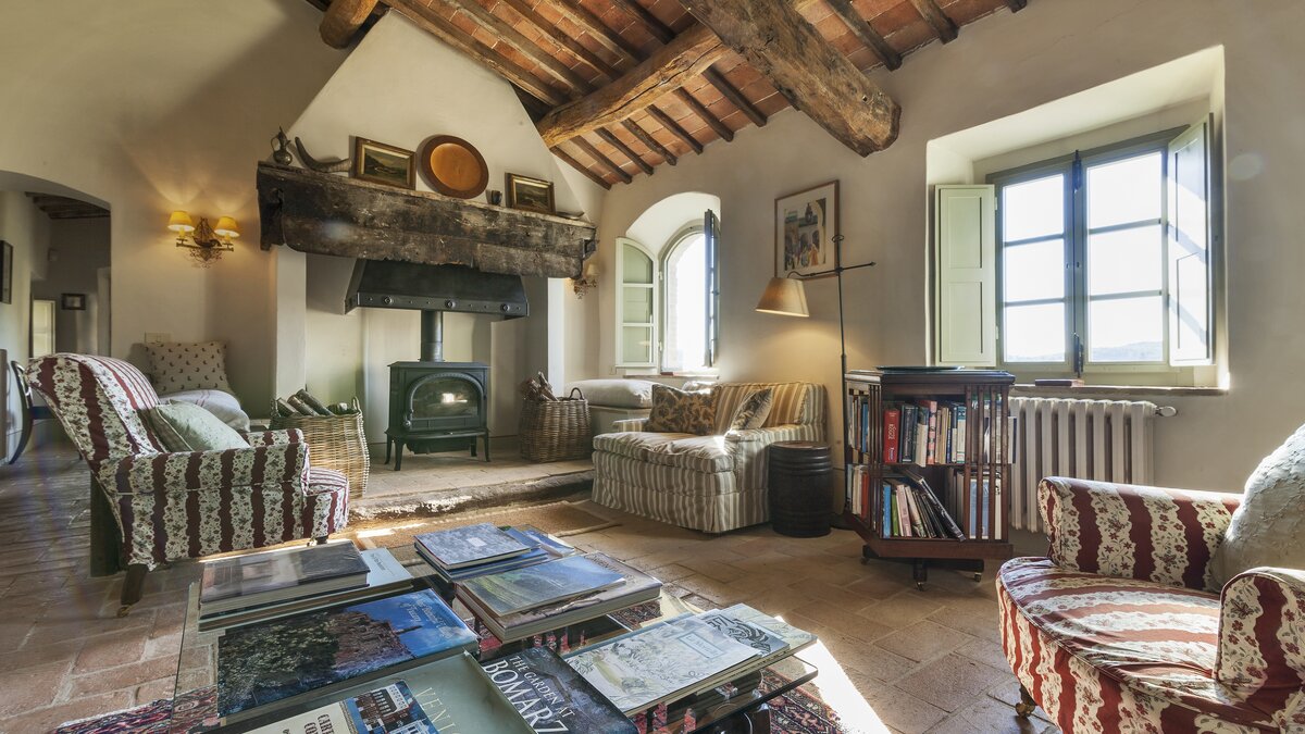Umgeben von Eichenwäldern, Weinbergen und Olivenhainen ist die Podere Sicelle eine außergewöhnliche Villa mit sechs Schlafzimmern und einem atemberaubenden Blick auf die Naturlandschaft der Toskana.