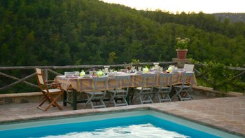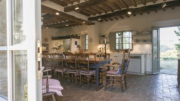 Im Freien glänzt Podere Sicelle wirklich. Durchdacht angelegte Gärten umgeben das Haus von allen Seiten und bieten verschiedene Essterrassen und Sitzbereiche inmitten ungezwungener Pflanzungen und duftender Kräuter. Ein langer Swimmingpool, flankiert von einer Arkadenloggia und einer Pergola, bietet einen erfrischenden Rückzugsort mit außergewöhnlicher Aussicht. Dessen Anwesen ist von einem neu bepflanzten Weinberg, Olivenhainen und Eichenwäldern umgeben, die aus allen Blickwinkeln eine malerische Kulisse schaffen. Denen Gäste können leicht in den lokalen Lebensstil eintauchen und vielleicht sogar an der Olivenernte teilnehmen, wenn sie im November zu Besuch sind. Mit seiner erstklassigen Lage ist das Podere Sicelle ein hervorragender Ausgangspunkt für die Erkundung der Schätze der Toskana, so dass die Gäste leicht die reiche Kultur und Küche der Region entdecken können.