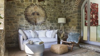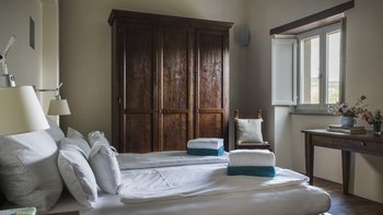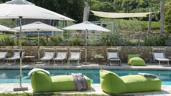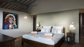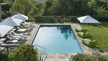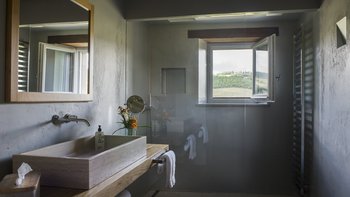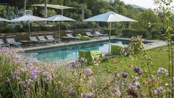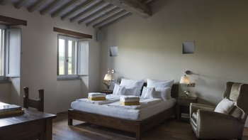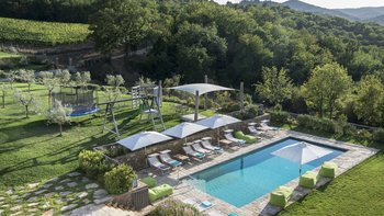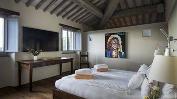 Der Außenbereich ist atemberaubend und bietet einen Panoramablick auf die Landschaft über die umliegenden Weinberge und sanfte Hügel, was die idyllisch abgeschiedene Lage dieser Villa noch verstärkt. Es gibt Yogamatten, auf denen die Gäste den Morgensonnengruß auf der Terrasse üben können, und auf dem weitläufigen Gelände gibt es einen schönen Pool auf einer der Rasenflächen mit Sonnenschirmen, Liegen und Sitzsäcken am Pool. Zu den Feinheiten der Villa Fieravista gehören ein kostenloses Frühstück 7 Tage die Woche und ein leichtes Willkommensdinner, das von einem Küchenchef zubereitet wird.