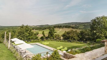 In wunderschön abgeschiedener Lage im Herzen der Toskana bietet die Villa Fieravista einen herrlichen Panoramablick auf die Weinberge, eine herrliche Architektur und eine kostenlose Weinprobe.