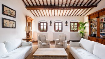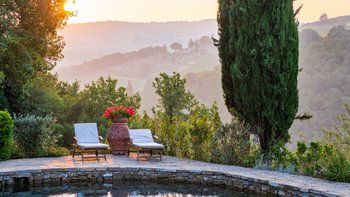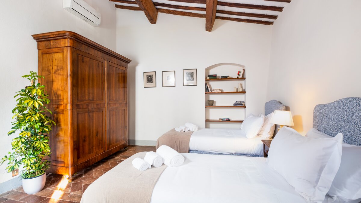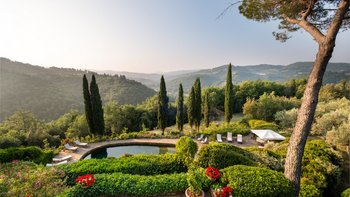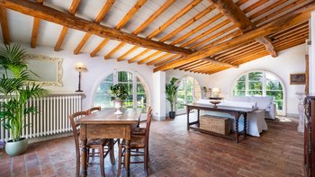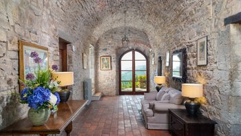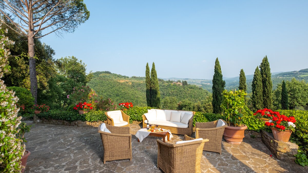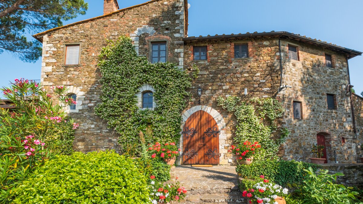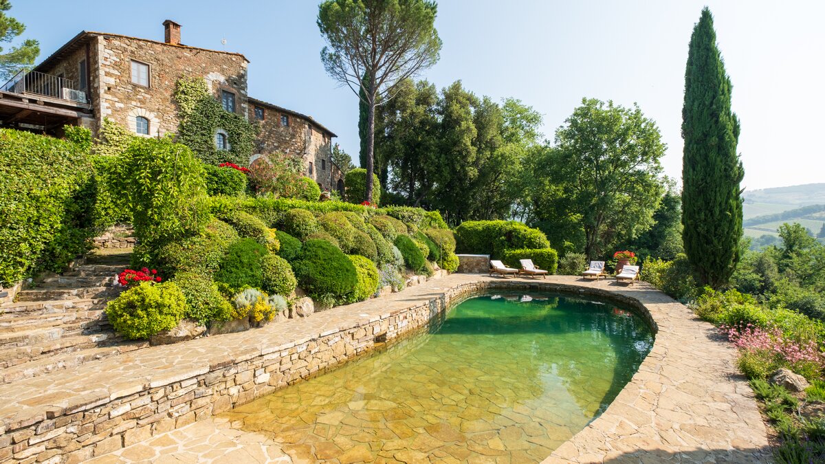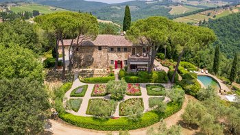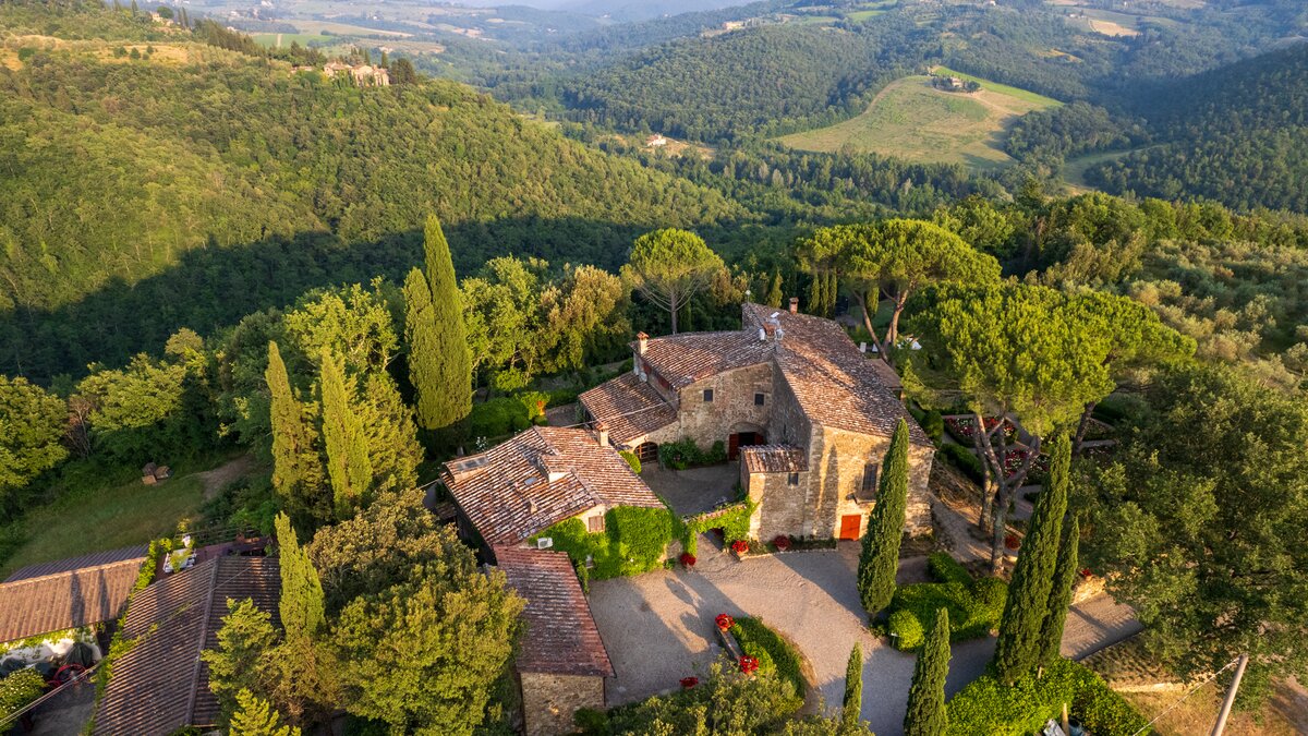 Einheimisches Personal, ein Kochservice, riesige Zimmer und formelle Rosengärten tragen zum Gefühl der Erhabenheit dieses historischen Landhauses bei. Und doch strahlt die Villa eine unwiderstehliche Atmosphäre aus, ein entspanntes Tempo und eine komfortable Kombination aus Charme der alten Welt und modernen Einrichtungen aus. Fast gleich weit zwischen Florenz und Siena liegt Montefiori inmitten von 5 Hektar Weinbergen und Olivenhainen. Dessen Gärten umfassen einen Boccia-Platz, einen Tennisplatz für Astro-Kurven und den Swimmingpool, der von einer Kräuterbank unterstützt wird und von einem schattigen Sitzbereich überblickt wird. Neben dem Haus befindet sich eine überdachte Terrasse für Mahlzeiten im Freien mit Blick auf die ruhige Aussicht und führt in das mühelos elegante Wohnzimmer, den bezaubernden Speisesaal im Landhausstil und den alten gewölbten Billardraum. Dessen Villa wurde gerade umfassend renoviert, einschließlich, aber nicht beschränkt auf neue moderne Sofas und Bettwäsche, neue Küche, neues Bad und Duschräume. Und das Haus ist nur einen Spaziergang von einem bekannten lokalen Restaurant La Cantinetta di Rignana und acht km von den Geschäften entfernt.