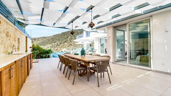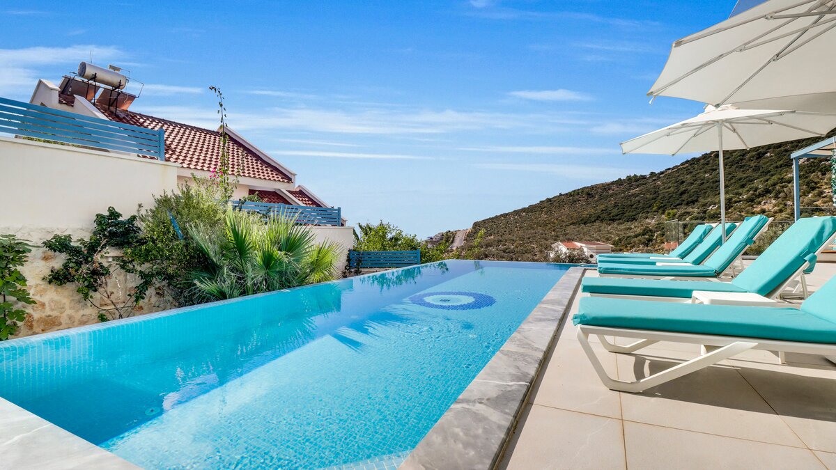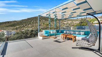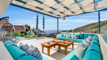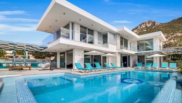 Die Villa verfügt über einen außergewöhnlichen Wohnbereich im Freien mit Poolliegen, einem großen Esstisch und bequemen Sofas. Der luxuriöse Infinity-Pool blickt auf die Hügel, das Meer und die Berge. Annehmlichkeiten wie Geschäfte, Restaurants und Bars sowie einen Strand finden Sie in Kalkan. Es gibt auch mehrere Strandclubs in der Nähe. Zu den Sehenswürdigkeiten gehören die antiken Überreste von Patara und die Überreste von Xanthos. Der nächste Flughafen ist Dalaman, 140 km von der Villa entfernt.