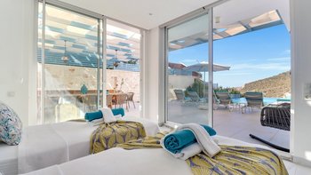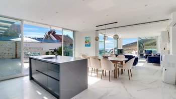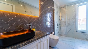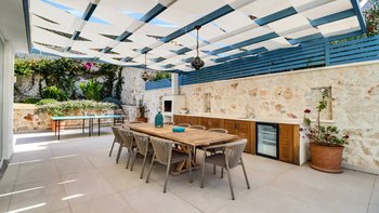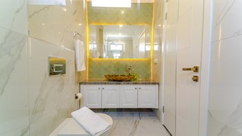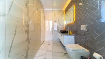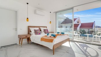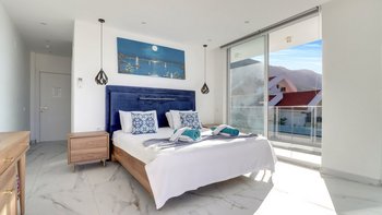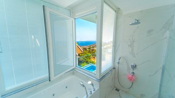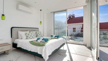Die Villa Guler befindet sich in idealer Lage auf einem Hügel mit einer außergewöhnlichen Aussicht und nur 1 km vom charmanten Zentrum von Kalkan entfernt. Dessen Anwesen ist wunderschön mit frischen, weißen Interieurs in auffälligen Farben eingerichtet. Im Inneren finden die Gäste eine helle und luftige OFFENER GRUNDRISS Küche, ein Wohn- und Esszimmer vor. Im Erdgeschoss befindet sich auch ein Zweibettschlafzimmer, das auch als Doppelschlafzimmer mit Dusche en suite gestaltet werden kann. Ein weiteres Schlafzimmer mit eigenem Eingang, eine Küchenzeile, ein Ankleidezimmer und ein Badezimmer en suite befinden sich im unteren Erdgeschoss. Ideal für Gäste, die während des Aufenthalts in der Villa zusätzliche Privatsphäre benötigen. Im Obergeschoss erwarten Sie weitere freundliche und farbenfrohe Zimmer, darunter zwei Doppelschlafzimmer mit eigenem Bad mit Dusche und Zugang zu einem Gemeinschaftsbalkon und ein Hauptschlafzimmer (Kingsize) mit eigenem Bad. Dieses Zimmer verfügt auch über einen eigenen Balkon, von dem Sie nach einem Tag am Pool den Sonnenuntergang über Kalkan beobachten können.