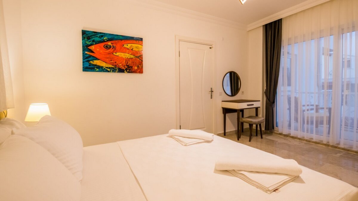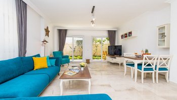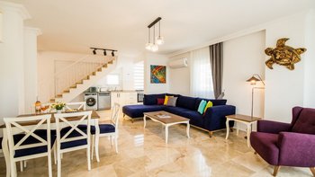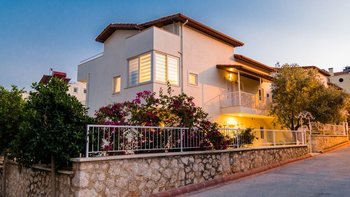 Villa Merkez ist eine Kombination aus drei Wohnungen, die zu einer Villa zusammengefasst sind, um den Gästen einen erholsamen Aufenthalt mit sieben Schlafzimmern zu bieten.