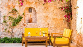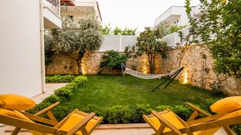 Villa Merkez ist eine Kombination aus drei Apartments in Kalkan, die zu einem kombiniert werden, um den Gästen einen erholsamen Aufenthalt mit sieben Schlafzimmern, einem Tauchbecken und einer Dachterrasse zu bieten.