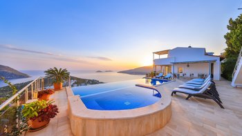 Die Villa Yalman ist eine moderne Villa mit fünf Schlafzimmern in Kalkan und bietet einen bezaubernden Blick über die Bucht und die Altstadt. Einiger der besten Bars und Restaurants der Stadt sind zu Fuß erreichbar.