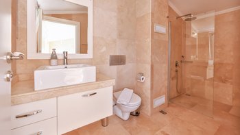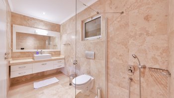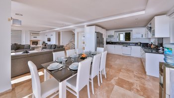 Im Inneren der Villa Yalman wurde mit Komfort und Stil im Hinterkopf entworfen. Der geräumige, offene Wohnbereich erstreckt sich auf die mittlere Etage und verfügt über zwei einladende Wohnbereiche, eine voll ausgestattete Küche und einen separaten Essbereich. Jedes der fünf Schlafzimmer verfügt über ein eigenes Bad und direkten Zugang zu den möblierten Terrassen, die einen privaten Rückzugsort für alle bieten. Für zusätzlichen Genuss sorgen zwei Schlafzimmer mit einem Indoor-Jacuzzi, während die Sauna und das Dampfbad der Villa eine Spa-ähnliche Atmosphäre schaffen, in der sich die Gäste nach einem erlebnisreichen Tag entspannen können.