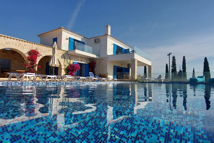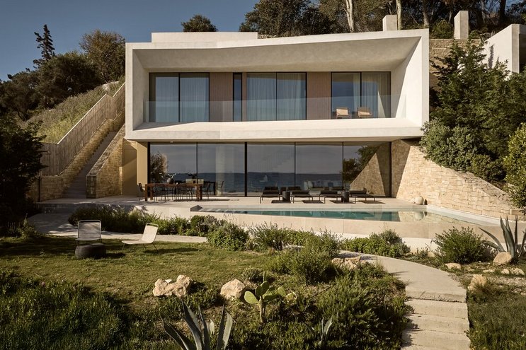 Diese moderne, neu erbaute Unterkunft in Zakynthos verfügt über wunderschön eingerichtete Innenräume und eine große Poolterrasse in einer atemberaubenden Lage.
