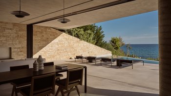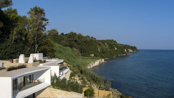 An der ruhigen Küste in der Nähe von Akrotiri gelegen, ist die Villa Aetheria eine moderne Oase, in der schlankes Design auf das endlose Blaue des Ionischen Meeres trifft. Auf 210 m² bietet dieses elegante Refugium eine ungestörte Aussicht und direkten Zugang zum Wasser, wodurch eine idyllische Umgebung für bis zu acht Personen geschaffen wird.