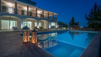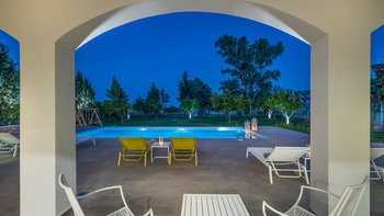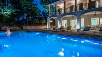 Es gibt nicht viel mehr als den Luxus eines kleinen Sandstrandes direkt vor der Haustür. Dieser schöne Privatvilla in der Nähe des Dorfes Lithakia ist ein absoluter Genuss – gehen Sie über den kleinen Privatweg am Ende des Gartens und schlagen Sie einfach auf den weichen Sand auf, der die Aussicht auf Ihre Villa umgibt. Der Außenbereich der Villa Raphaela ist unglaublich großzügig. Es gibt große Rasengärten für Spiele und einen großzügigen privaten Pool mit Liegestühlen und Brollies auf der gepflasterten Terrasse rundherum. Ein schattiger Sitzbereich mit Blick auf den herrlichen Meerblick ist ein fantastischer Ort für eine faule Siesta oder Entspannung vor oder nach dem Abendessen – und es gibt einen überdachten Esstisch mit einem Grill und einem Pizzaofen im Freien, so dass Sie wirklich in die Stadt gehen können, um eine Villa im Freien zu essen.