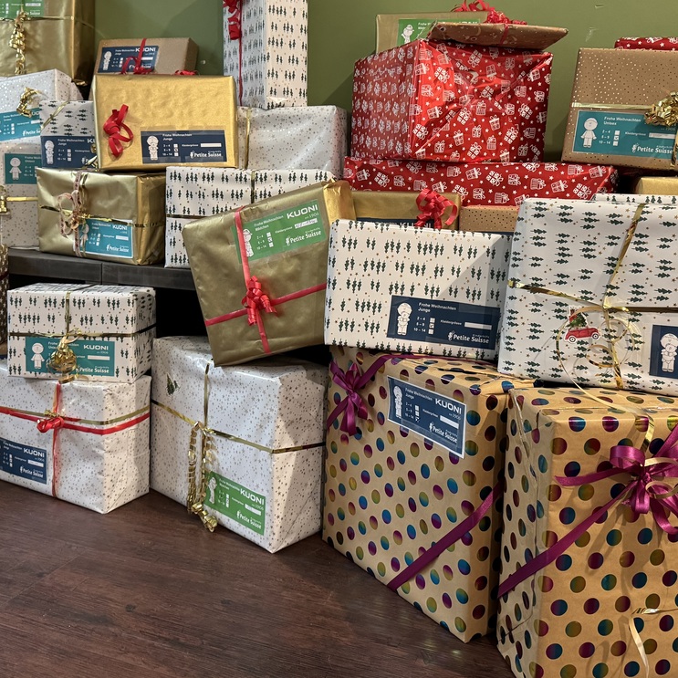 Weihnachtskampagne mit Petite Suisse zu «Engel verschenken Weihnachtspakete» in allen Filialen der Schweiz.