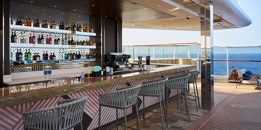 Bei allen Poolbereichen darf natürlich eine Bar nicht fehlen. Reisen in warme Destinationen wie die Karibik oder das Mittelmeer bekommen so einen besonderen Reiz: An Seetagen mit dem Lieblingscocktail in der Hand den Blick übers Meer gleiten lassen oder bei einem längeren Aufenthalt die Atmosphäredes Hafens überblicken. Für kältere Tage lockt der Indoor-Pool mit zwei weiteren seitlichen Whirlpools.