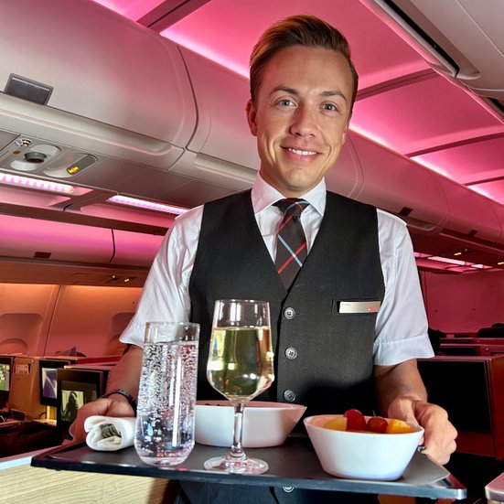 Erleben Sie, wie die Kabinencrew nicht nur für Ihren Komfort sorgt, sondern auch zu einem freundlichen Gegenüber auf Ihrer Reise wird. Mit einem Lächeln bietet Ihnen die erfahrene Crew nicht nur einen exzellenten Service, sondern auch wertvolle Tipps rund um Ihr Reisevergnügen in der SWISS Business. So vergeht selbst die längste Reise wie im Flug.