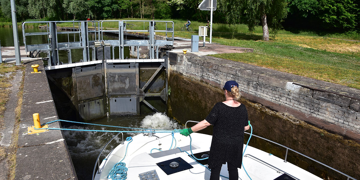Schleusenarten variieren je nach Region, sie gehören zu einem Bootsurlaub dazu und sind Teil des Erlebnisses. Es gibt manuelle, elektrische und automatische Schleusen, mit und ohne Schleusenwärter. Mit etwas Übung werden Sie den Schleusenvorgang verstehen und es geniessen, sich in der Schleuse mit anderen Bootsfahrern auszutauschen, Kommunikation ist wichtig! Auch hier gilt, dass man sich im Vorhinein in das Thema einlesen und informieren soll. Zwei Crewmitglieder müssen vor der Schleuseneinfahrt in Stellung sein und die Anweisungen des Kapitäns befolgen. Während dieser Phase sollten sie konzentriert sein und sich nicht ablenken lassen. Es gilt, das Hausboot mit den Tauen zu stabilisieren, dafür muss die Crew teilweise über Leitern vom Boot gehen oder an Landspringen. Bei Einhalten der Sicherheitsempfehlungen wird das Schleusenfahren schon bald zum geselligen Erlebnis.