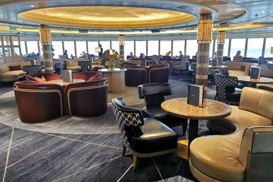 Doch nicht nur auf der grossen Bühne wird erstklassige Unterhaltung geboten. In den verschiedenen Lounges – etwa im Queen’s Room, im Pub oder in der Bright Lights Society – finden ganztags und bis in die Nacht hinein Konzerte, Shows und interaktive Aktivitäten statt. Beim Vorbeigehen oder Durchlaufen stosst man immer wieder auf Unterhaltung, die zum Verweilen oder Mitmachen einlädt. Die Atmosphäre ist lebendig, aber nie aufdringlich – genau die richtige Mischung aus Eleganz und Lockerheit. Cunard hat kleine feine Ecken eingebaut, von denen aus man praktisch geschützt dem Programm folgen kann – man ist mitten drin und kann entscheiden, ob man aktiv oder passiv Teil des Gebotenen ist.