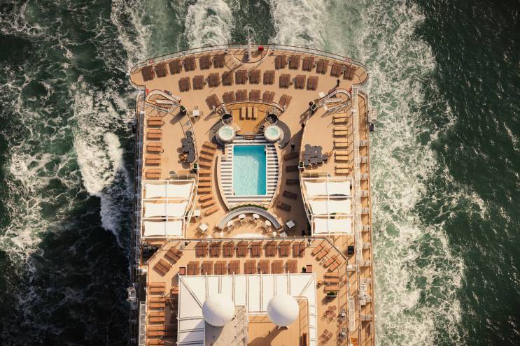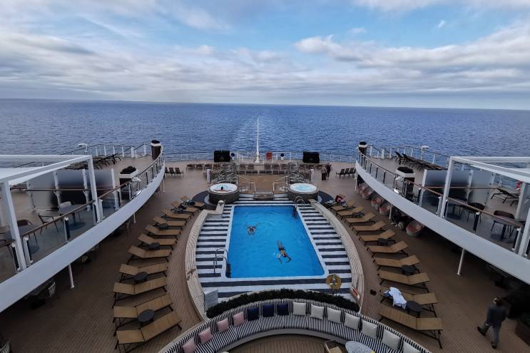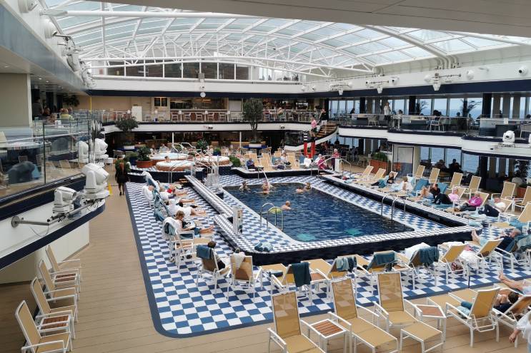 Poolbereiche gibt es zwei: Am Pool im Heck des Schiffes behält man unter freiem Himmel das Meer im Blick. Genügend Liegeflächen sind über Deck 9 und 10 verstreut und von der Cabana Bar auf Deck 11 stösst man am besten auf den Sonnenuntergang an. Der zweite Pool befindet sich ebenso auf Deck 9 in der Mitte des Schiffes und hat eine riesige Glaskuppel, was ein wetterfestes Pool-Erlebnis auf kälteren Routings ermöglicht. Neu in diesem Bereich ist das Wellness Café mit gesunden Alternativen für Frühstück und Mittagessen.