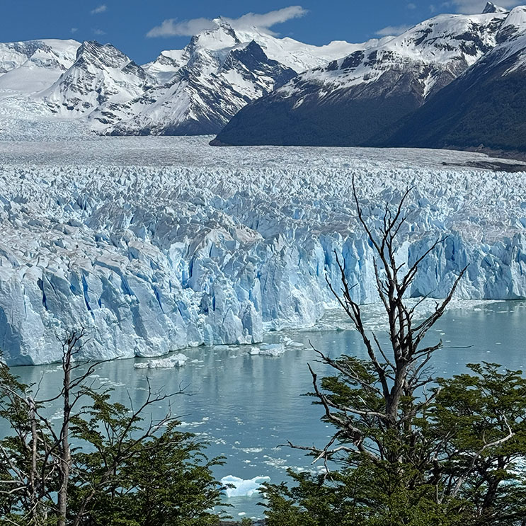 Der Besuch des Perito‑Moreno‑Gletschers ist ein eindrückliches Naturerlebnis: Über den Brazo Rico treiben gewaltige Eisberge, und wenig später erhebt sich vor uns die 60 Meter hohe Gletscherfront. Von Bord eines kleinen Bootes aus spüren wir die Kraft des Eises besonders intensiv. Das tiefe Grollen, das Knacken und das mächtige Donnern, wenn ein Eisblock in den See stürzt, lassen uns die Dynamik dieses Naturmonuments mit allen Sinnen erleben.