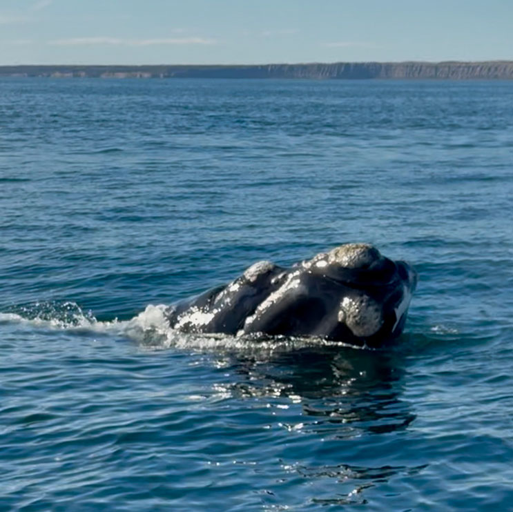 Bei einer Bootstour im Golfo Nuevo kommen wir dann den Südlichen Glattwalen unglaublich nahe. Sie gleiten elegant unter unserem Boot hindurch, tauchen neben uns auf und präsentieren ihre mächtigen Flossen – ein unvergesslicher Moment.