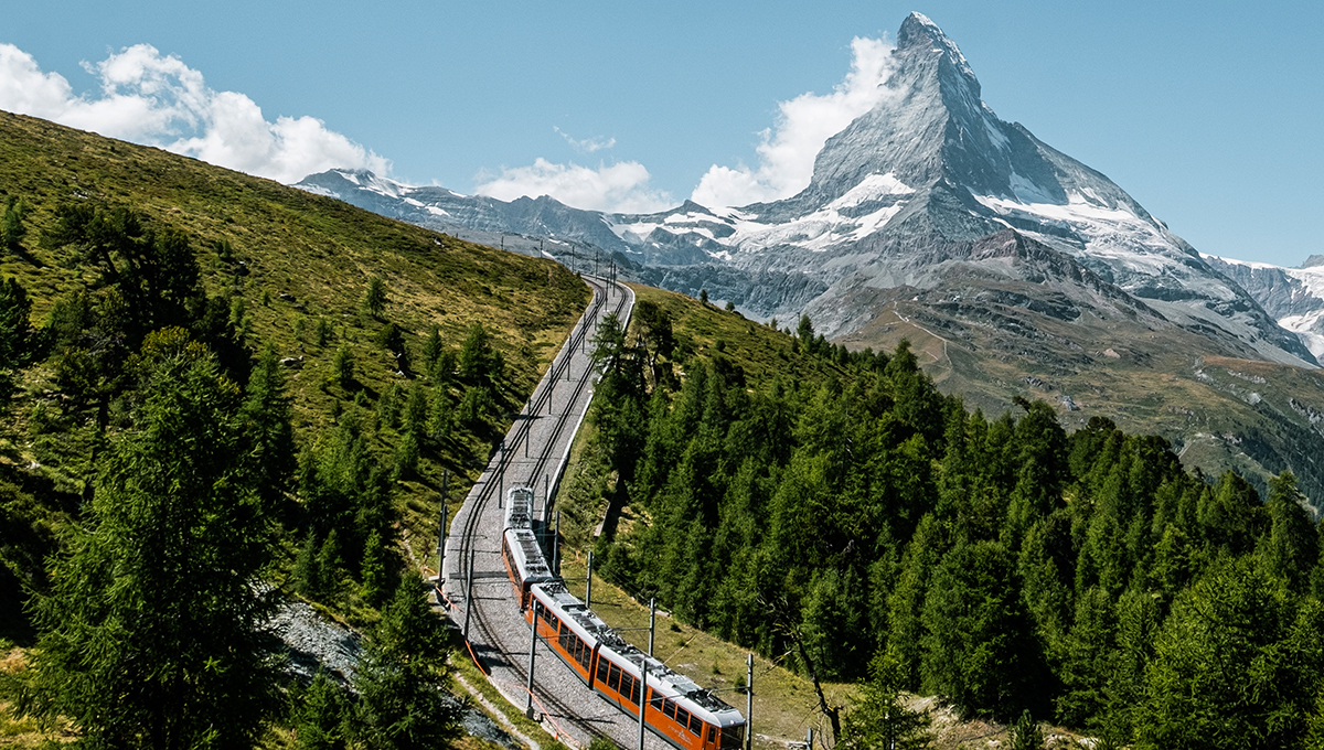 Zermatt ist einer der renommiertesten Schweizer Bergorte und bietet nicht nur fantastische Aussichten auf das weltbekannte Matterhorn, sondern auch auf fast einen Drittel aller 4000er-Berge der Alpen. Besonders eindrücklich sind die Aussichten auf die Berggipfel vom Gornergrat aus. Zu diesem 3100 Meter hohen, exklusiven Aussichtspunkt gelangt man seit 1898 das ganze Jahr über bequem per Zahnradbahn. Die Strecke führt über eindrucksvolle Brücken, durch Galerien und Tunnels, umgeben von idyllischen Wäldern und Alpwiesen, vorbei an Steinschluchten und Gebirgsseen. Allgegenwärtig begleitet von den majestätischen Bergriesen, allen voran das Matterhorn. Bereits der Weg zum Aussichtsberg wird zu einem Erlebnis der Spitzenklasse