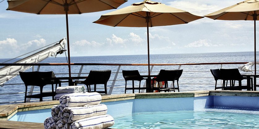 Auch die Tage und Nächte auf See sind nicht langweilig: Es gibt Vorträge, die thematisch auf die Expeditionen eingehen, man erfährt viel über die Völker der Region, ihre Traditionen und ihre Systeme. Daneben gibt es einen Fitnessraum, bequeme Schattenplätze, um ein Buch zu lesen oder den Blick aufs Meer schweifen zu lassen. Und schliesslich köstliche Verpflegung, die für Wanderungen an den Landgang-Tagen Energie spendet.