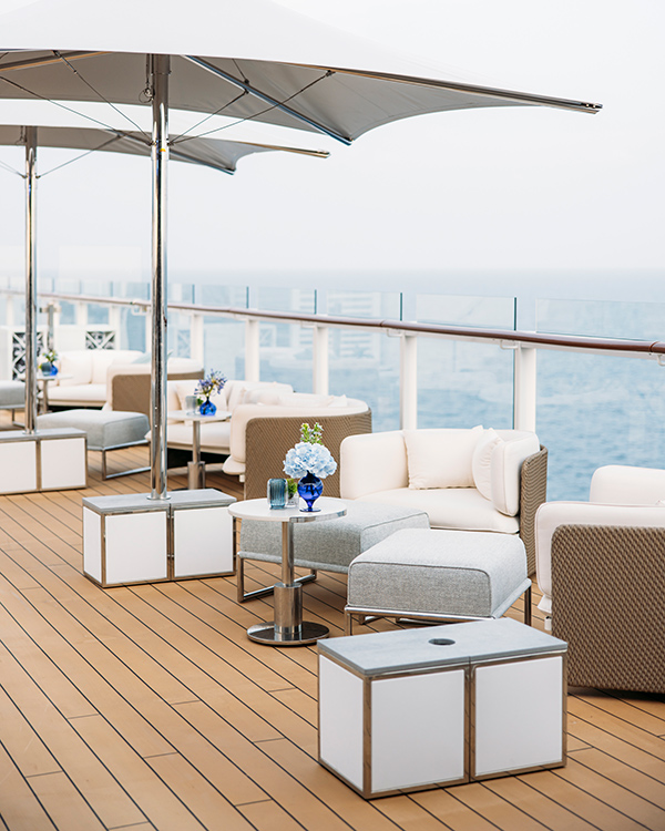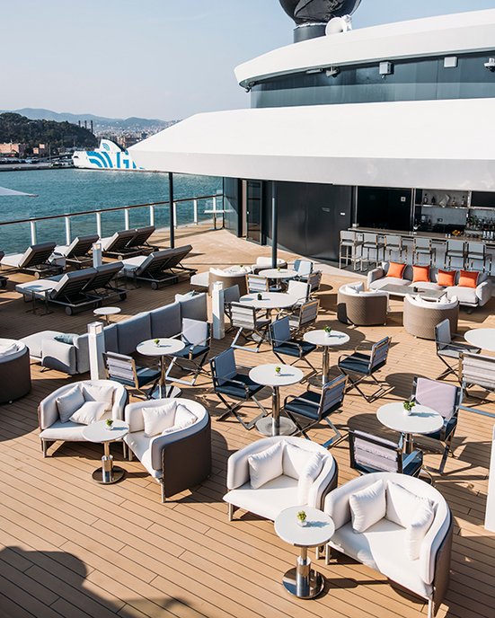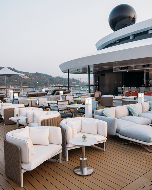 Nachdem ich mich mit meiner Suite bekanntgemacht habe, erkunde ich das Schiff. Meine Wahl für das Mittagessen fällt auf das Beach House. Am Poolbereich wähle ich aus einer Karte, die mit peruanisch inspirierten Snacks und Mahlzeiten echtes Beach House Feeling aufkommen lässt. Für Abkühlung sorgt der Infinity-Pool und in den bequemen Sonnenliegen kann man seinen Träumen nachhängen. Der anschliessende Living Room erstreckt sich über die Hälfte des Decks und bildet das Herzstück des Schiffs. Tagsüber ein gemütlicher Aufenthaltsort mit einem kleinen Café (Kaffee- und Teespezialitäten, Snacks und Süsses) und abends verwandelt er sich in einen Ort für eine Party oder Unterhaltung. Ein bisschen versteckt und vielleicht sogar ein Geheimtipp ist die Observation Terrace auf Deck 9 vorne. Windgeschützt kann man dort in Ruhe einen Cocktail geniessen.V on der MistralBar auf Deck 10 hinten hat man alles im Blick: Die Bugwellen und den Infinity Pool aus der Vogelperspektive. Das Mistral Restaurant wurde zu meinem Lieblingsort für ein entspanntes Frühstück bei geöffneten Glastüren. Die Poolbar und der Poolbereich auf Deck 10 Mitte bilden eine zweite Alternative zum Infinity-Pool auf Deck 5. Somit verteilt sich alles schön je nach Lust und Laune der Gäste.