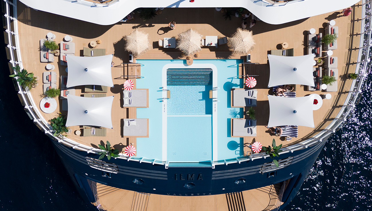 Auf der brandneuen ILMA steht den 450 Gästen sehr viel Platz zur Verfügung. Die in der Kreuzfahrtindustrie als Platzverhältnis bezeichnete Kennzahl beträgt bei diesem Schiff über 100 und liegt somit im Spitzenbereich. Ein äusserst grosszügig angelegter Wellness und Fitnessbereich lässt bereits ahnen, dass sich alles um das Wohlbefinden der Gäste dreht. Zwei Poolbereiche mit anschliessenden Restaurants verwöhnen kulinarisch in Aussen- und Innenbereichen. Bars erstrecken sich über die verschiedenen Decks und bieten für jede Stimmung und Tageszeit ihr eigenes Flair. Auch gastronomisch gesehen wird es bestimmt nicht langweilig: Je nach Lust und Laune gibt es vom kleinen Snack bis hin zum Spezialitätenrestaurant vom Sternekoch die gesamte Bandbreite.