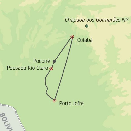 Ankunft in Cuiaba und Fahrt auf der Transpantaneira-Strasse bis Porto Jofre. Die nächsten drei Nächte verbringen Sie in einer komfortablen, weitläufigen Anlage mit Swimming-Pool.
